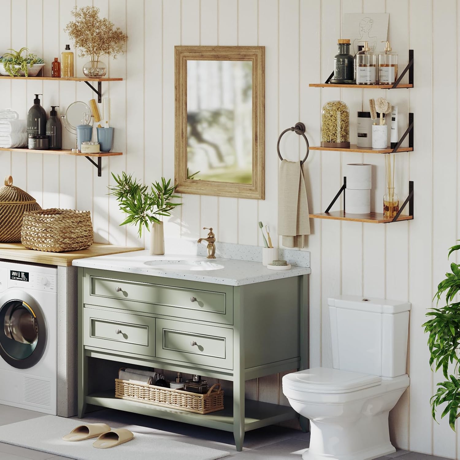 - 【Sturdy & Durable】Crafted from high-grade particleboard and metal brackets, the hanging shelves are built to last. The sturdy construction guarantees durability, withstanding the weight (up to 22lbs) over time. They are not only strong but also resistant to wear and tear, maintaining its sleek appearance for years to come