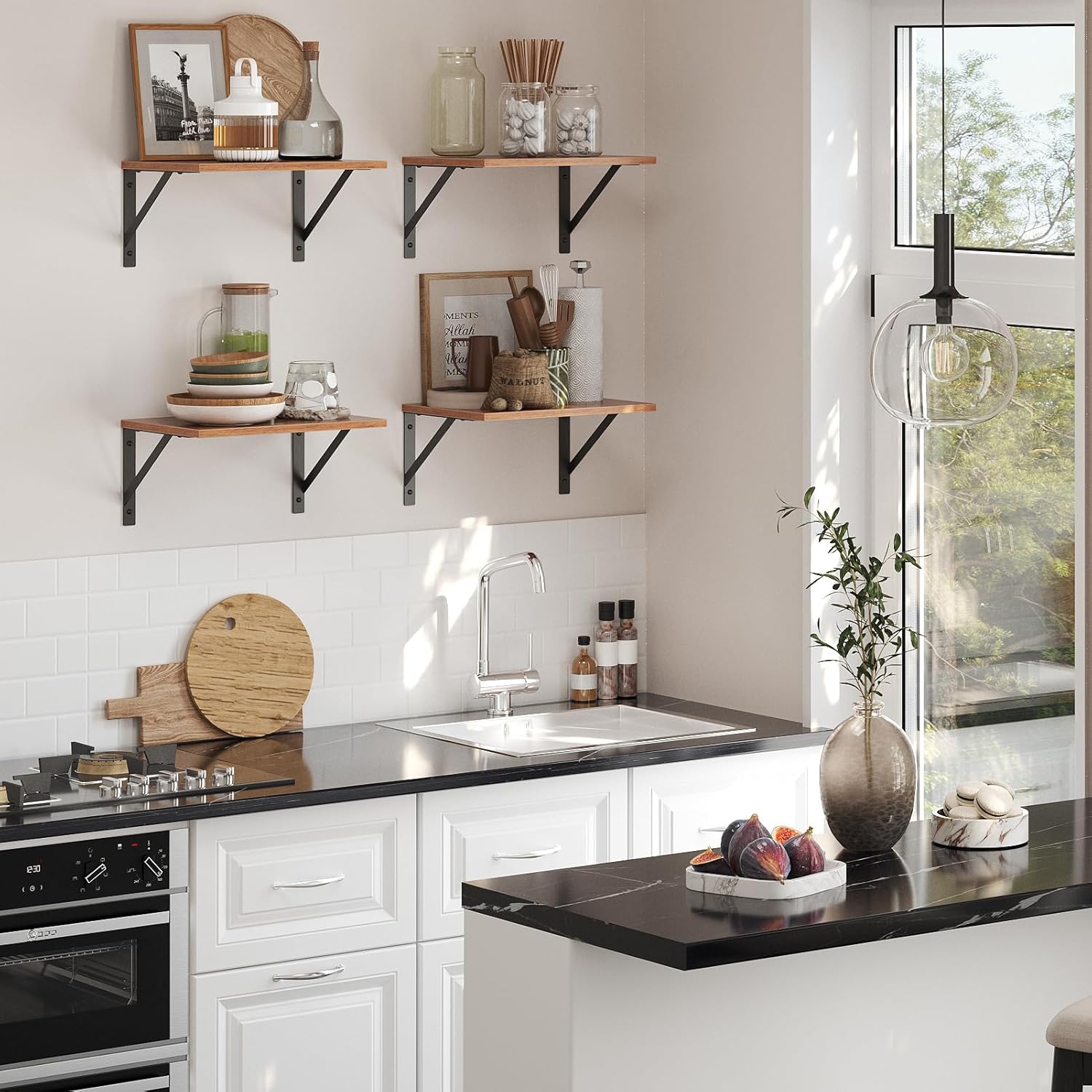 - 【Versatile in Any Room】Metal brackets can be installed on the top or bottom of the shelf. Use it as a bookshelf in the study, a floating nightstand in the bedroom, a display shelf for family photos and legos in the living room, a bathroom shelves for toiletries. Upgrade your kitchen and laundry with these ledges