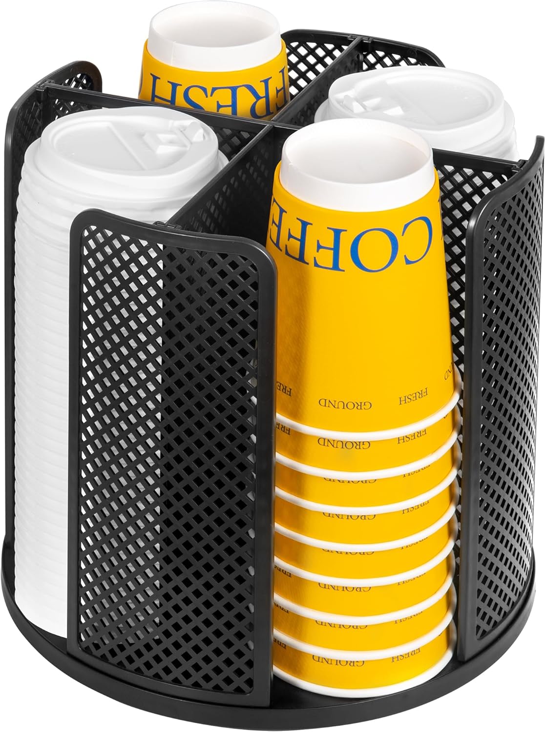 - Effortless 360° Rotation: Smooth-spinning tray provides instant, one-handed access to cups and lids in this coffee cup dispenser
