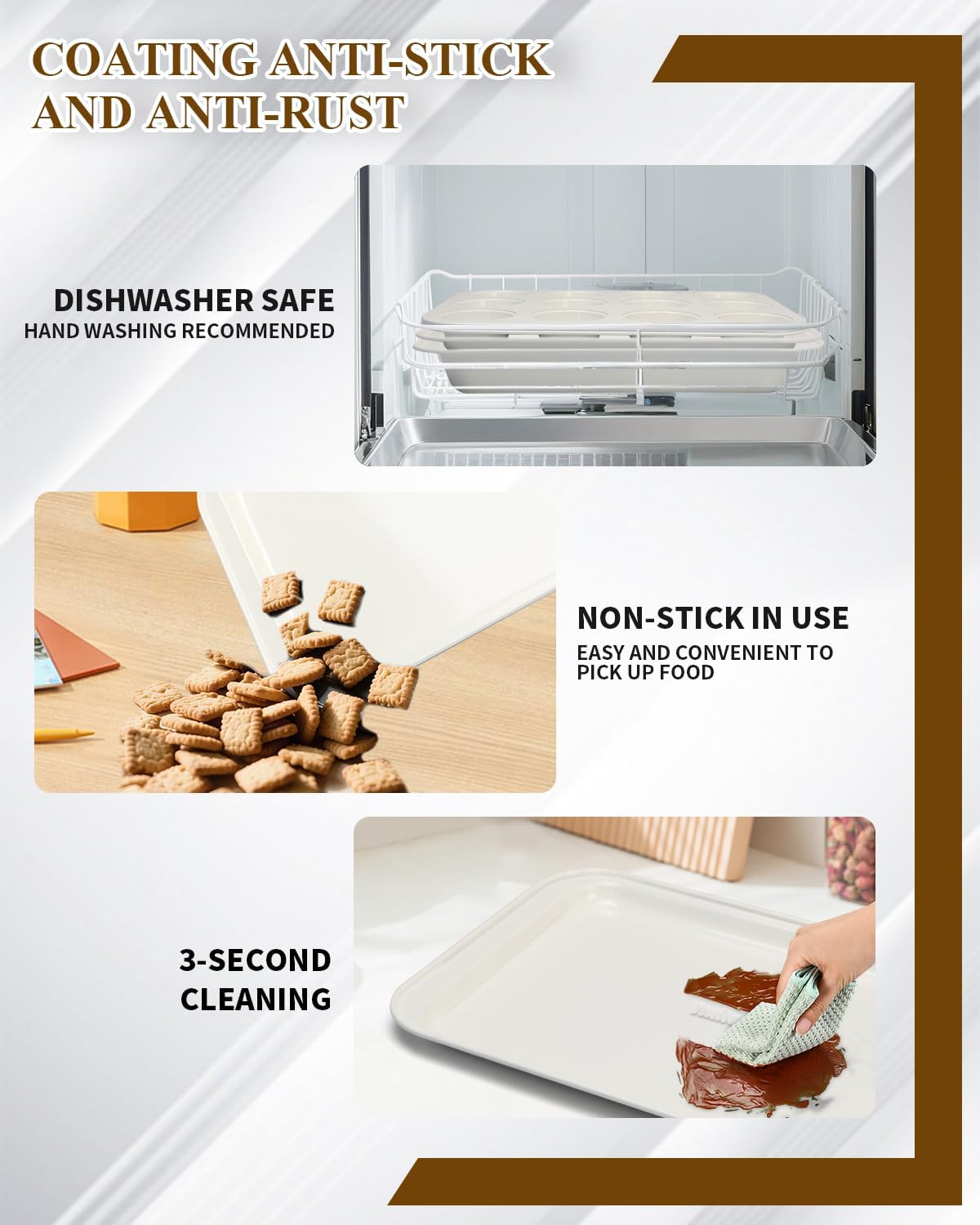 - NONSTICK & NON-TOXIC BAKING Sheets Set– Durable carbon steel construction with a safe, scratch-resistant nonstick coating for effortless food release and easy cleanup—no oil or butter needed, PTFE/PFAS/PFOA-free