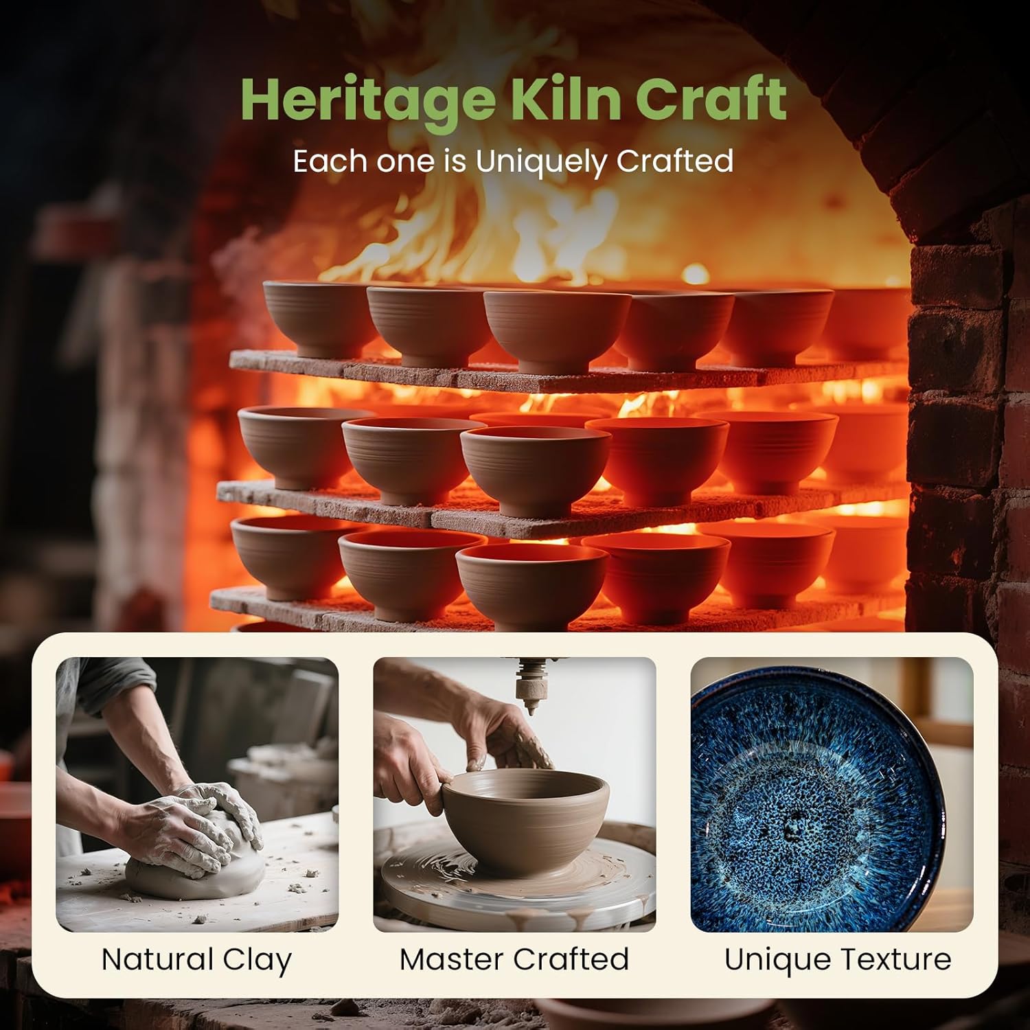 - Heritage Kiln Craft: This matcha bowl is masterfully kiln-fired at high temperatures with an intricate crackle glaze on the interior, featuring delicate patterns reminiscent of a starlit sky. More than just practical, it’s a beautiful piece of art perfect for matcha ceremonial grade tea ceremonies and sharing matcha with friends.