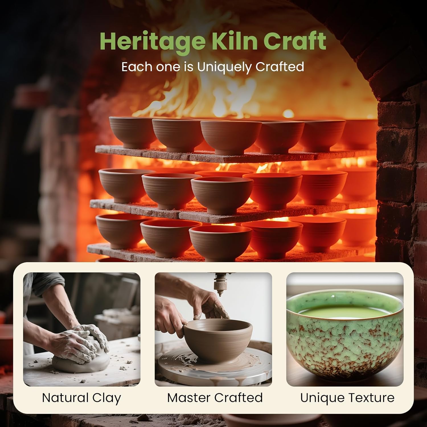 - Heritage Kiln Craft: This matcha bowl is masterfully kiln-fired at high temperatures to create a unique celadon glaze with natural kiln patterns, making each piece a one-of-a-kind masterpiece. More than just practical, it’s a beautiful piece of art perfect for matcha ceremonial grade tea ceremonies and sharing matcha with friends.