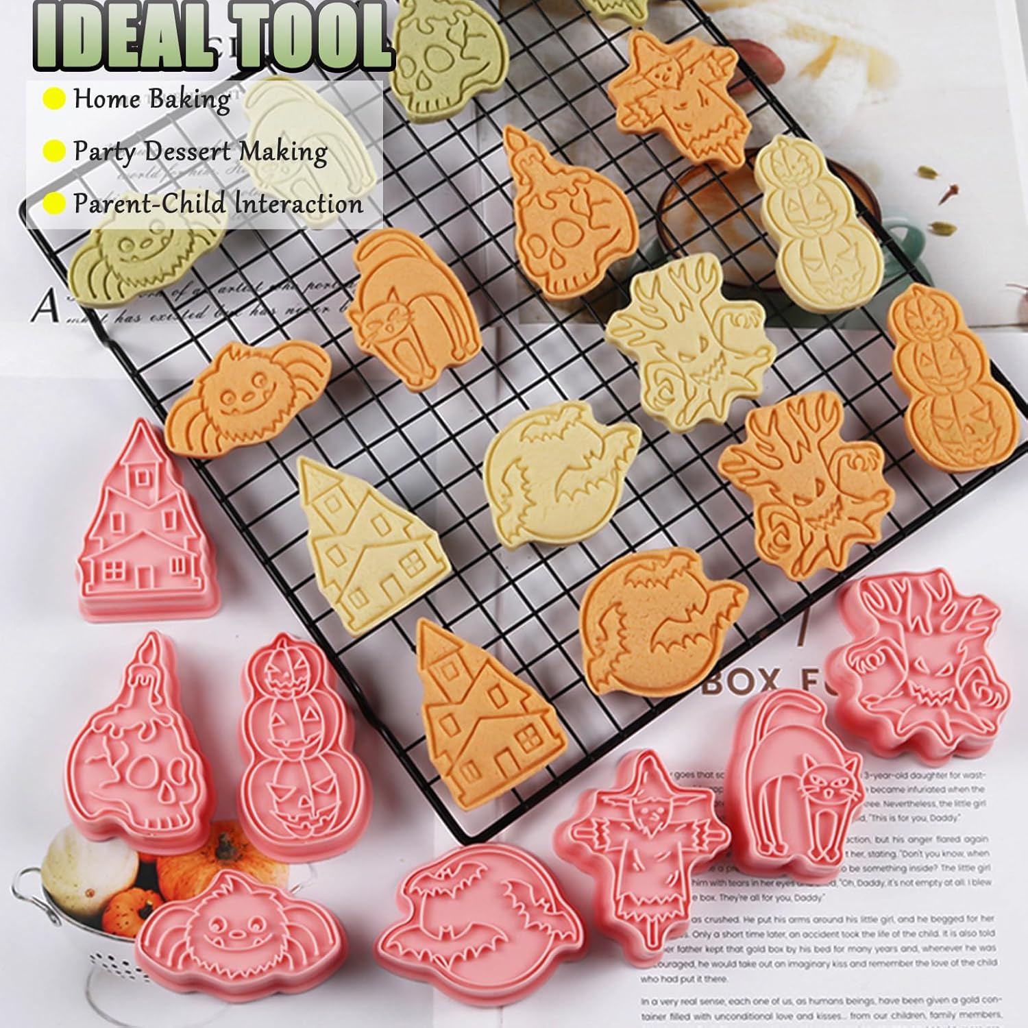 8 Pcs Halloween Cookie Cutters Set Baking Molds 3D Halloween Press type Cookie Cutter for Baking, Fondant, Cheese, and Pastries