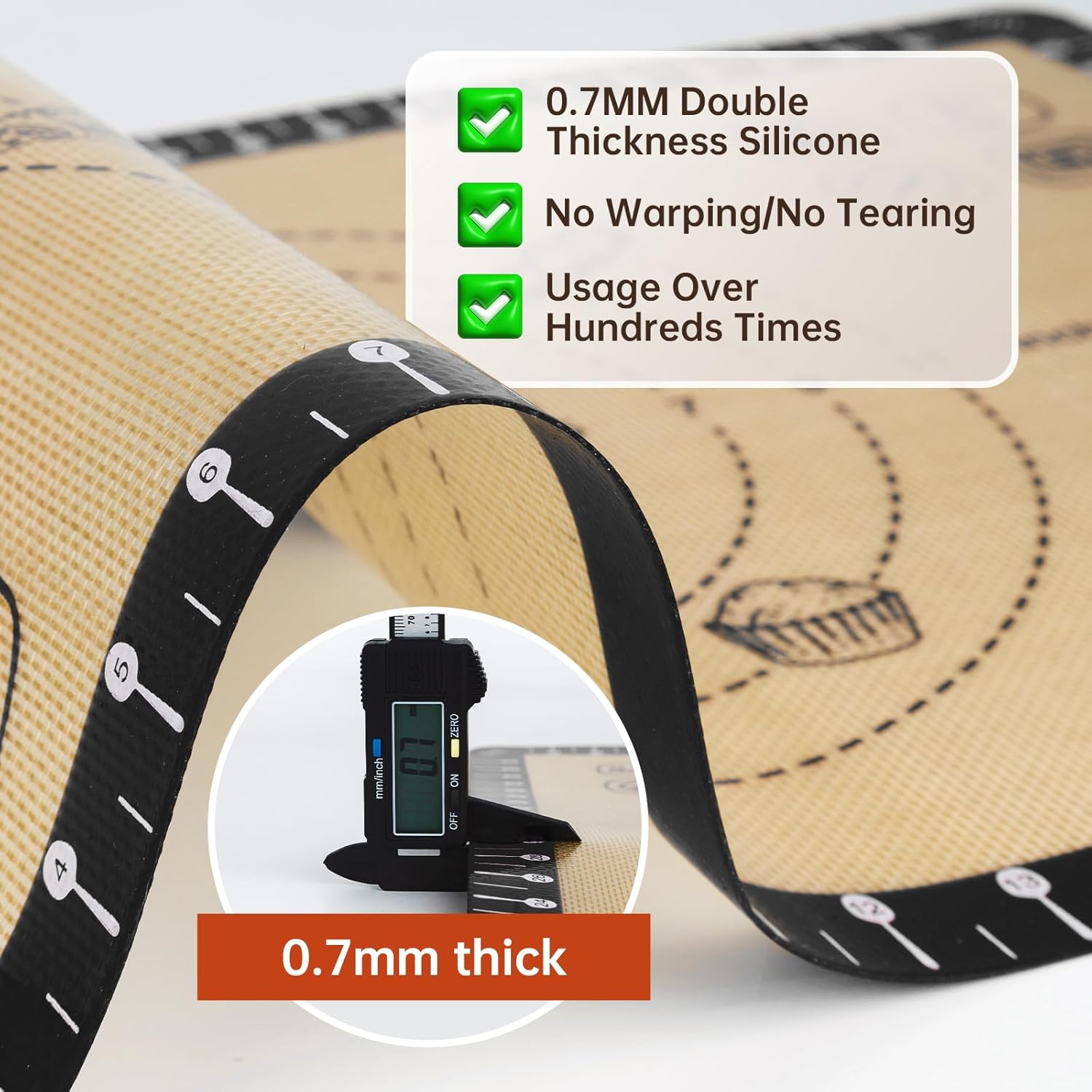 Silicone Baking Mat with 10 Recipes, Extra Thick Silicone Mats for Baking, Non Stick Pastry Mat,Reusable kneading Dough Rolling Mat for Cookie, Macaron, Bread, Pizza