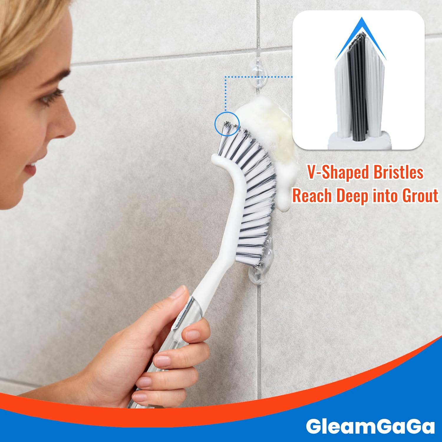 - 【3 Brushes for Complete Cleaning】 This cleaning brush set includes a small multipurpose scrub brush, a large bathroom scrub brush, and a V-shaped grout brush—covering every corner of your home. From shoes and sinks to toilet edges, bathtubs, walls, floors, tiles, and countertops, this scrub brush set is designed to tackle them all with ease.