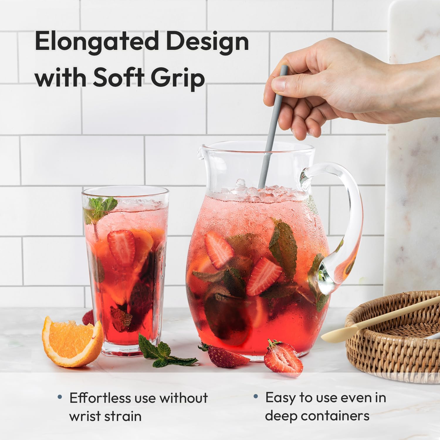 2Pcs Carrotez 9.9" Silicone coffee stirrer, Long Coffee Spoon, Reusable Iced Tea Spoon, Multipurpose Beverage Stirring Stick - Grey