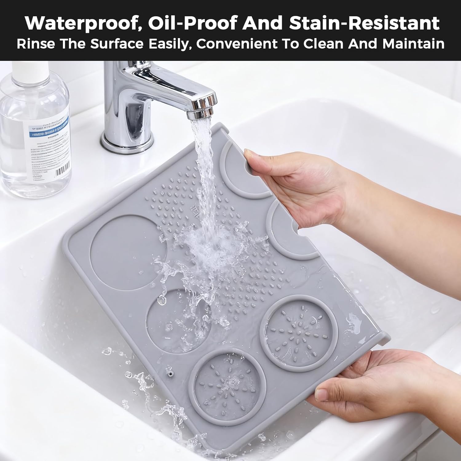 - Easy to Clean and Maintain: The espresso mat for counter is waterproof, oil-proof and stain-resistant. You can rinse the surface easily or put it in the dishwasher. And then place the top mat in an empty place to dry it. The raised edges around the mat help to contain any coffee grounds, preventing them from spilling over onto your counter, making the cleanup process quick and hassle-free.