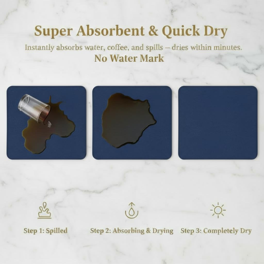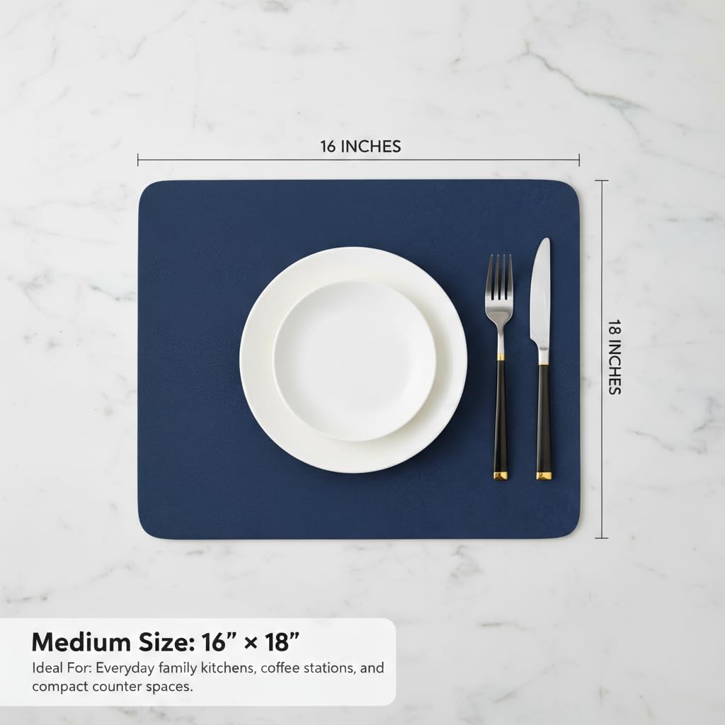 Dish Drying Mat Super Absorbent – 16" x 18" Coffee Mat for Countertops – Non-Slip Drying Mat for Kitchen Counter – Easy to Clean Water Absorbent Mat – Large Dish Drying Mats (Navy Blue)