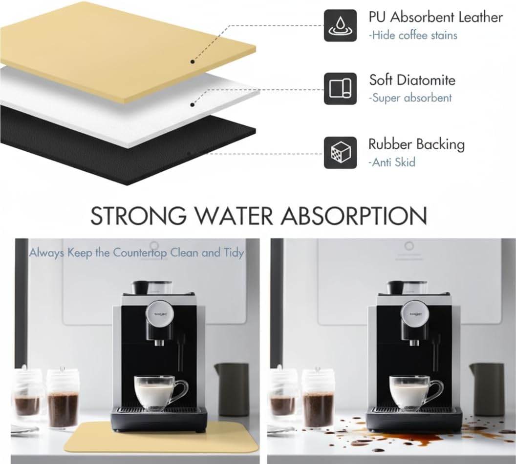 Dish Drying Mat Super Absorbent – 16" x 18" Coffee Mat for Countertops – Non-Slip Drying Mat for Kitchen Counter – Easy to Clean Water Absorbent Mat – Large Dish Drying Mats (Butter Yellow)