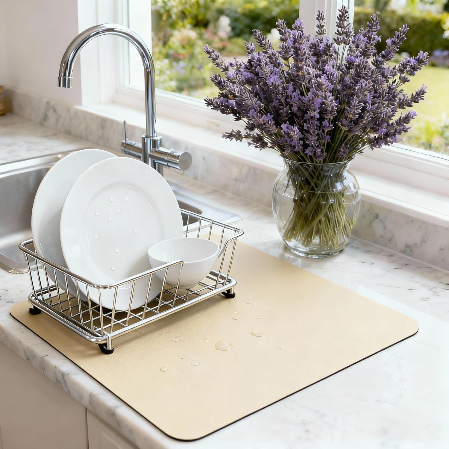 - EXCEPTIONAL ABSORBENCY: Experience the superior absorbent power of our Dish Drying Mat, designed to quickly soak up moisture from freshly washed dishes, ensuring a faster and more efficient drying process.