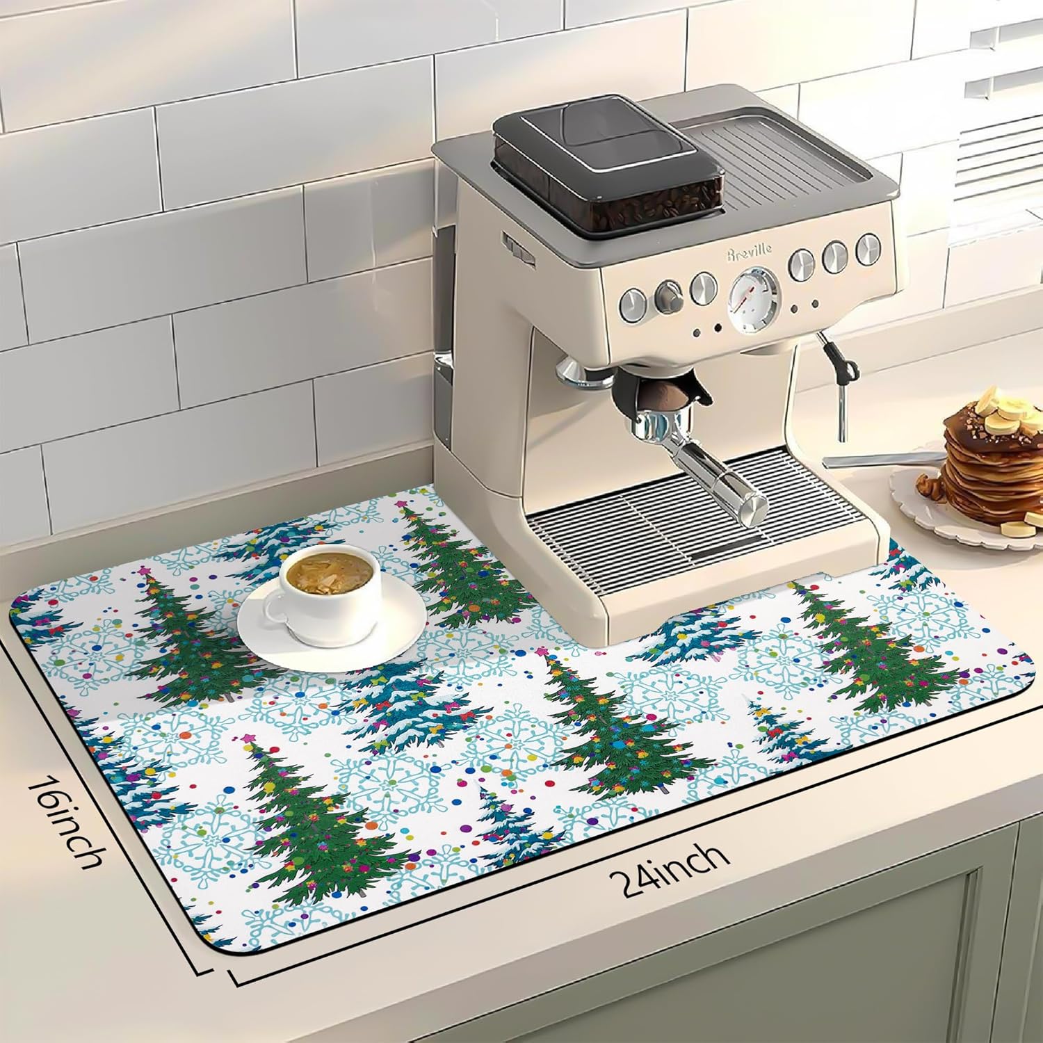 Bloss Coffee Bar Mat, Christmas 16"x24" Absorbent Bar Mat with Waterproof Rubber Back, Fit Under Coffee Maker Machine/Kitchen Counter