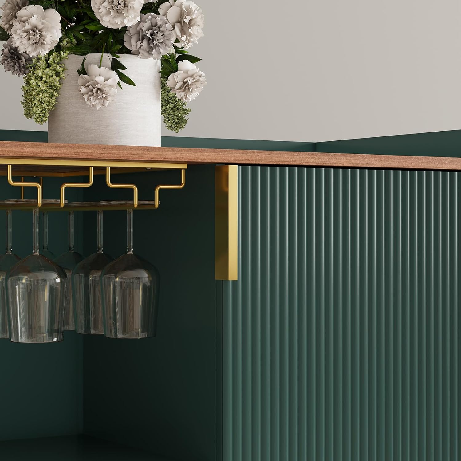 ARTPOWER 48" Wine Bar Cabinet with Fluted Texture, Modern Buffet Sideboard with Wine Rack and Glass Holder, Liquor Coffee Station with Storage for Kitchen, Living Room, Home Bar, Green
