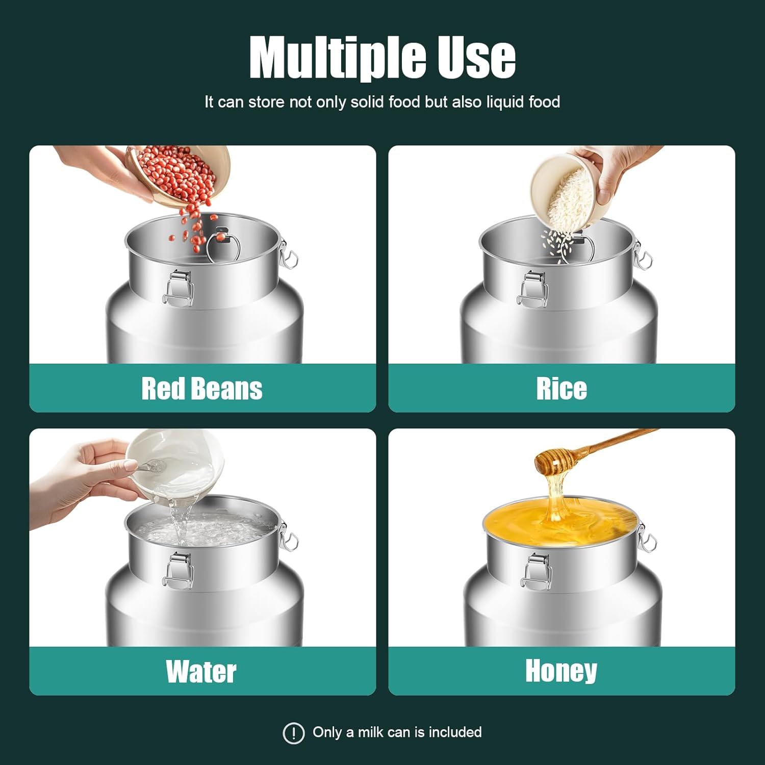 - Application:It is widely used in household and commercial applications and is very suitable for storing water, milk, wine, cheese, cream, flour, oil, ghee, rice, wheat, beans, tea, grain, etc.