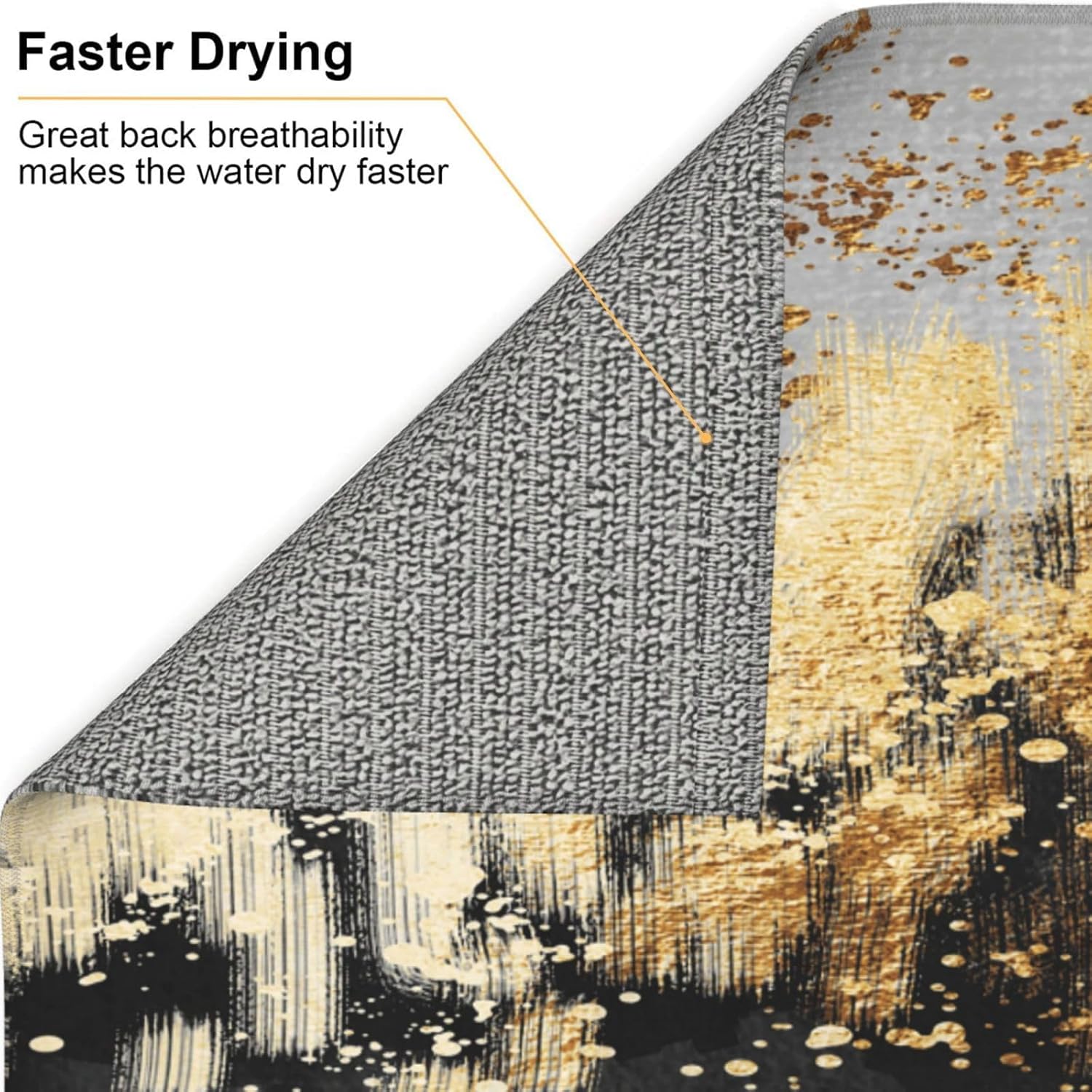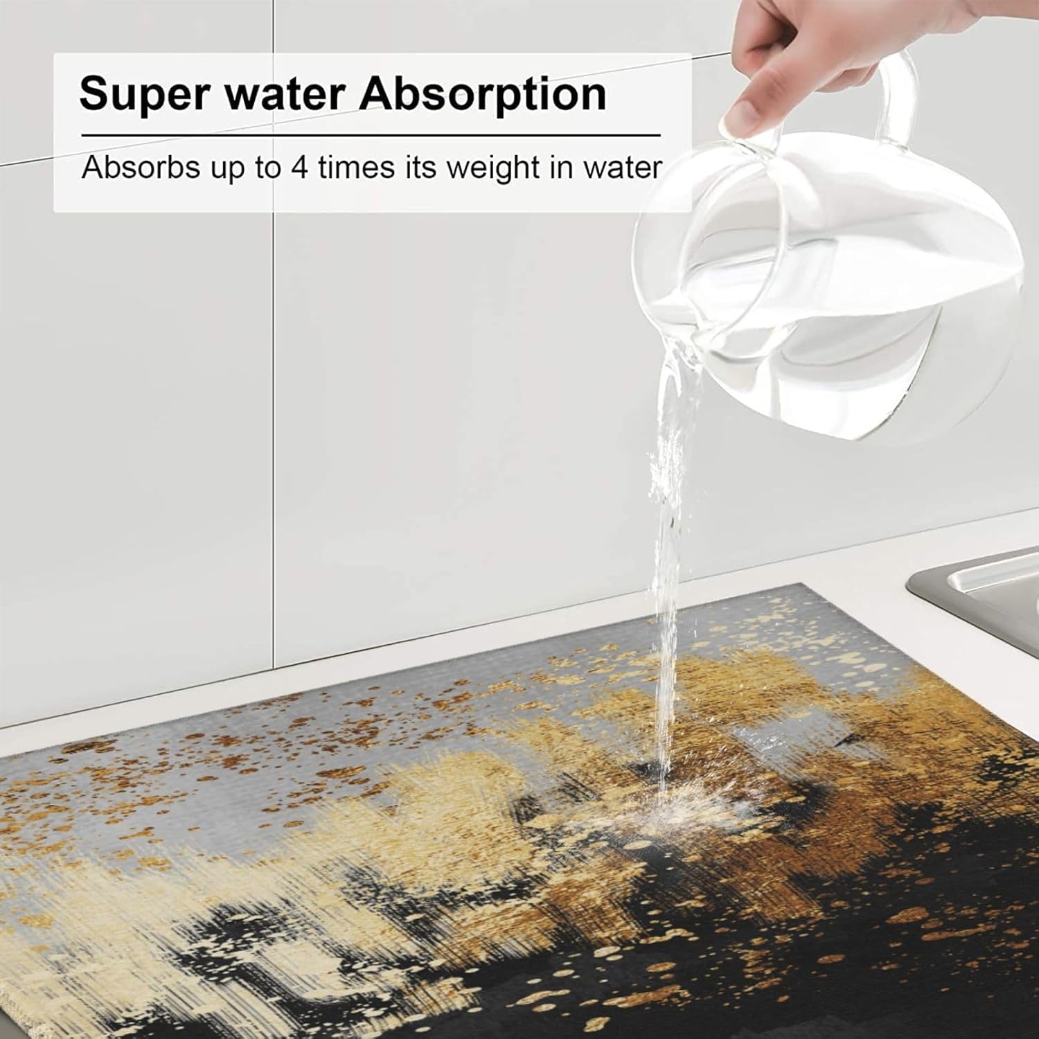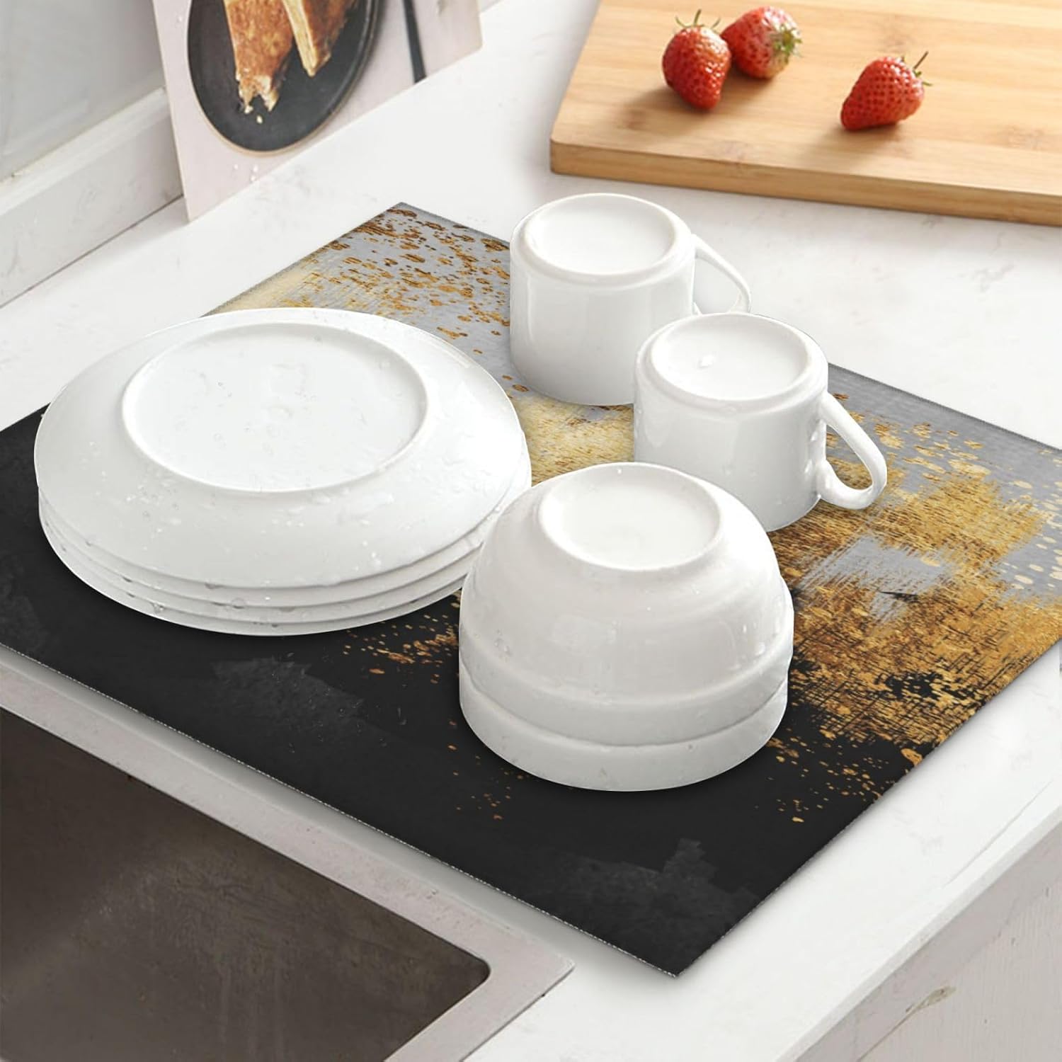 - Premium Microfiber Material: This black gold art splash dish drying mat is made of high-quality microfiber, making it an absorbent drying pad that quickly soaks up water, keeping your kitchen counter dry. The durable material ensures long-term use, ideal as a dish drying pad for kitchen counter